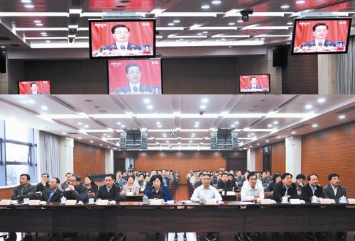 本網(wǎng)訊 11月8日上午,省政協(xié)主席喬傳秀、副主席黃旭明等領(lǐng)導(dǎo)和機(jī)關(guān)干部職工集中收聽收看中國共產(chǎn)黨第十八次全國代表大會(huì)開幕會(huì)盛況,聆聽胡錦濤代表中國共產(chǎn)黨第十七屆中央委員會(huì)所作的報(bào)告。收看結(jié)束后,喬傳秀就學(xué)習(xí)好、宣傳好、貫徹好十八大報(bào)告提出了要求。