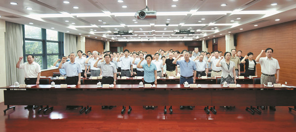 7月1日,省政協機關組織黨員集體過政治生日,面對鮮紅黨旗重溫入黨誓詞。喬傳秀出席。